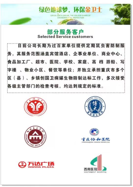 歡迎您來到(金衛(wèi)士有害生物防治)重慶白蟻防治中心,重慶白蟻防治公司,重慶滅鼠公司,重慶除四害公司,重慶滅蟑螂公司,重慶殺蟲公司!