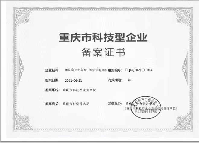 重慶市科技型企業(yè)-備案證書(shū)